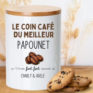 Vous recherchez une idée cadeau papa café originale ? Ne cherchez plus ! Chez Henriette & Co, nous avons imaginé le pot à café personnalisé parfait pour faire plaisir à tous les papas amateurs de café. Imprimé avec soin dans notre atelier en France, ce bocal élégant deviendra un incontournable de sa pause café. 🇫🇷