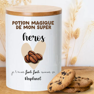 Vous recherchez une idée cadeau papa café originale ? Ne cherchez plus ! Chez Henriette & Co, nous avons imaginé le pot à café personnalisé parfait pour faire plaisir à tous les papas amateurs de café. Imprimé avec soin dans notre atelier en France, ce bocal élégant deviendra un incontournable de sa pause café. 🇫🇷
