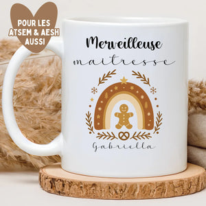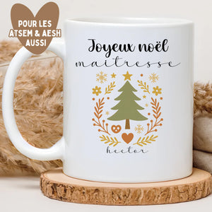 Mug Noël personnalisé maîtresse – Le cadeau parfait pour ATSEM & AESH